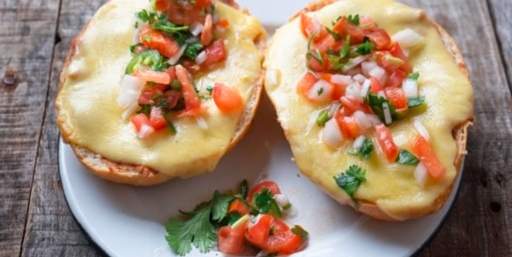 Deliciosos molletes de 24 cm. Elaborados con frijoles y una mezcla de quesos Oaxaca , manchego, Chihuahua y queso Philadelphia.