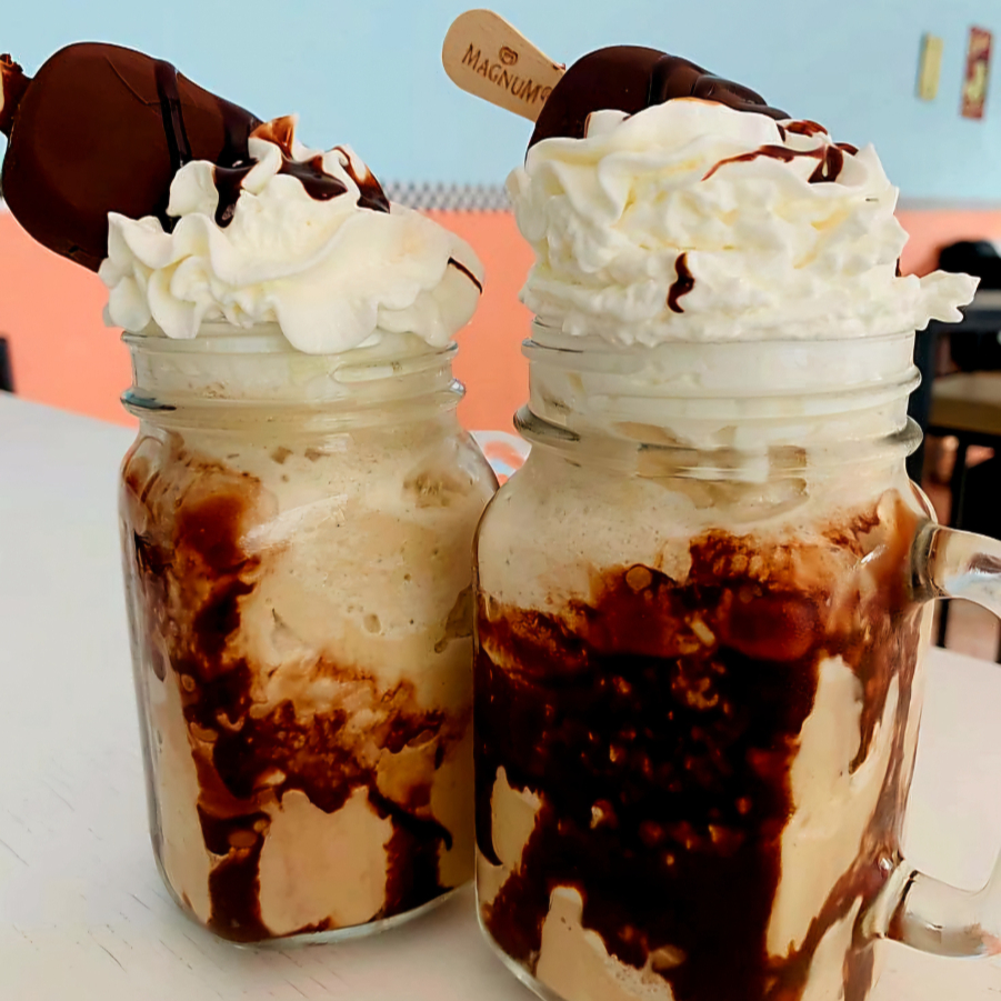 Bebida a base de café,mágnum,leche y hielo