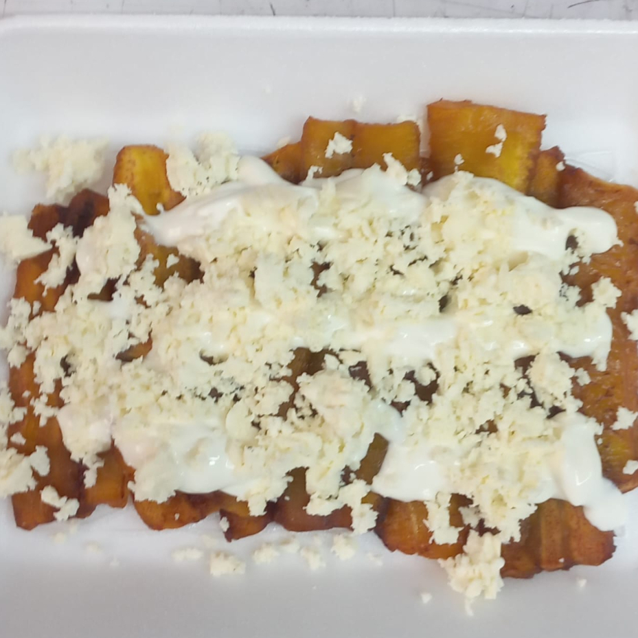 Platanos fritos con crema y queso.