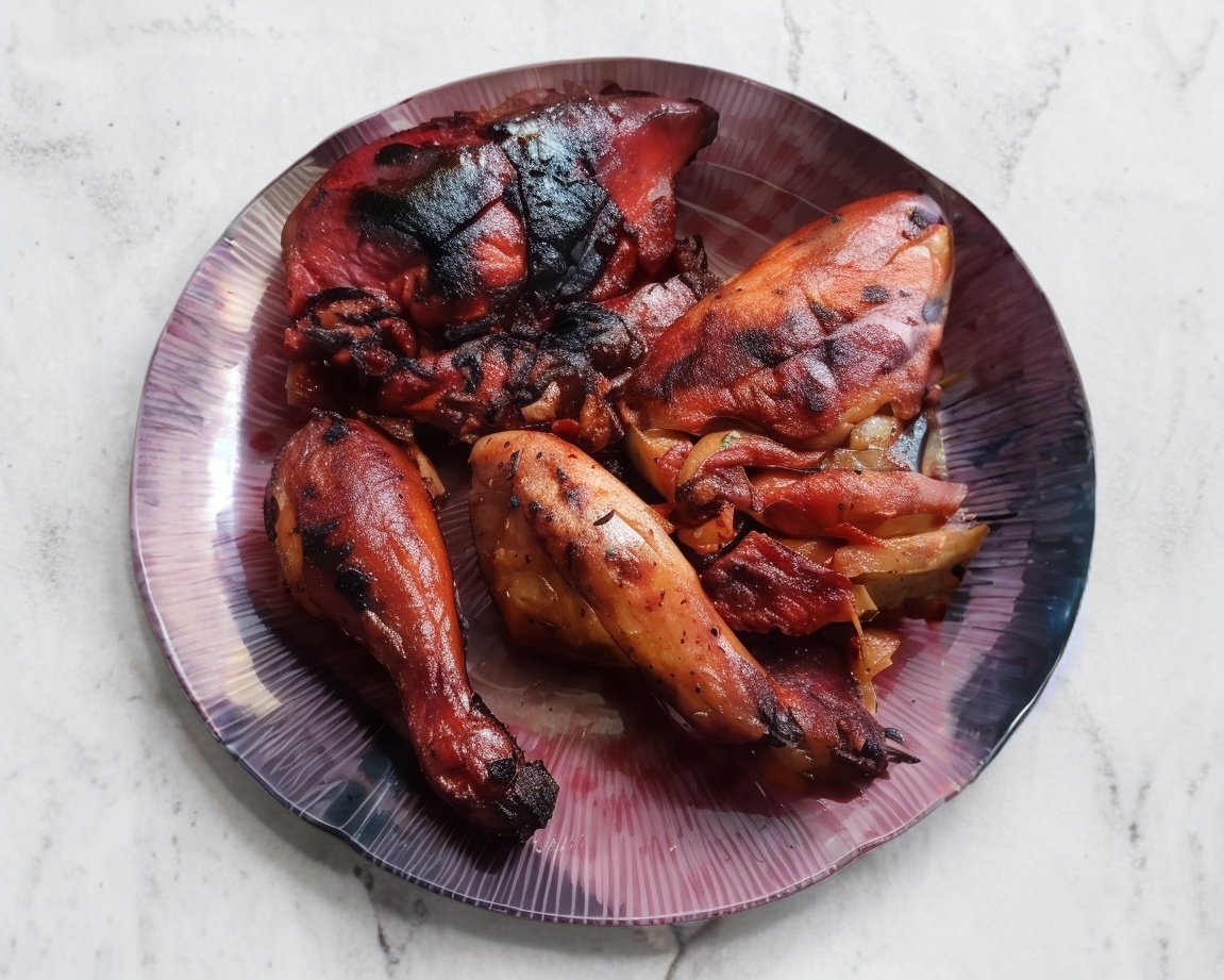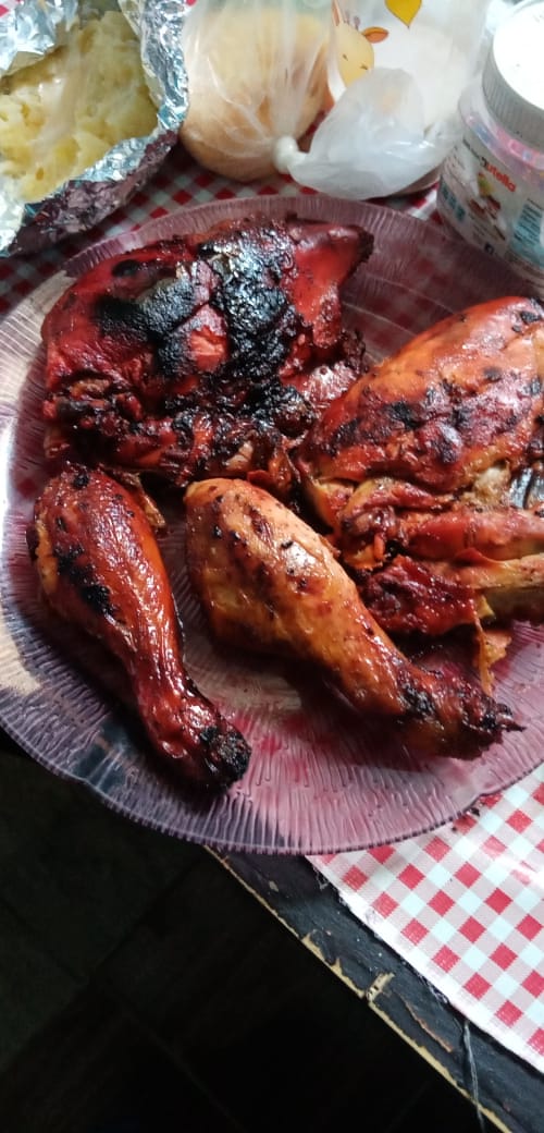 Medio pollo asado al carbón.