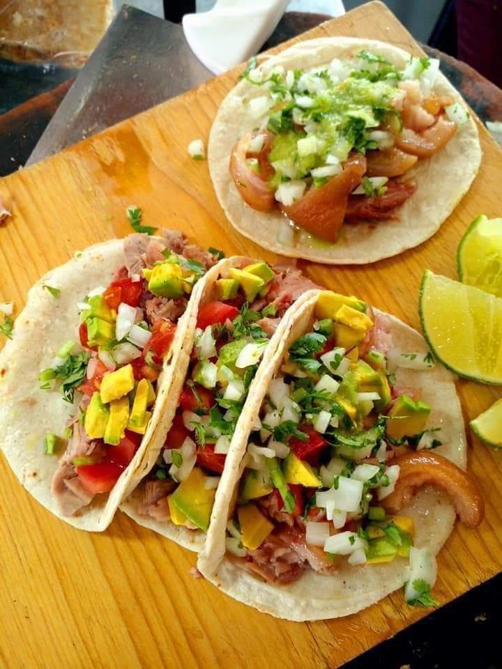 Kilo y medio carnitas ,2 refrescos sabor y 2 bolsas chicharrón (tortillas,salsas y verduras)