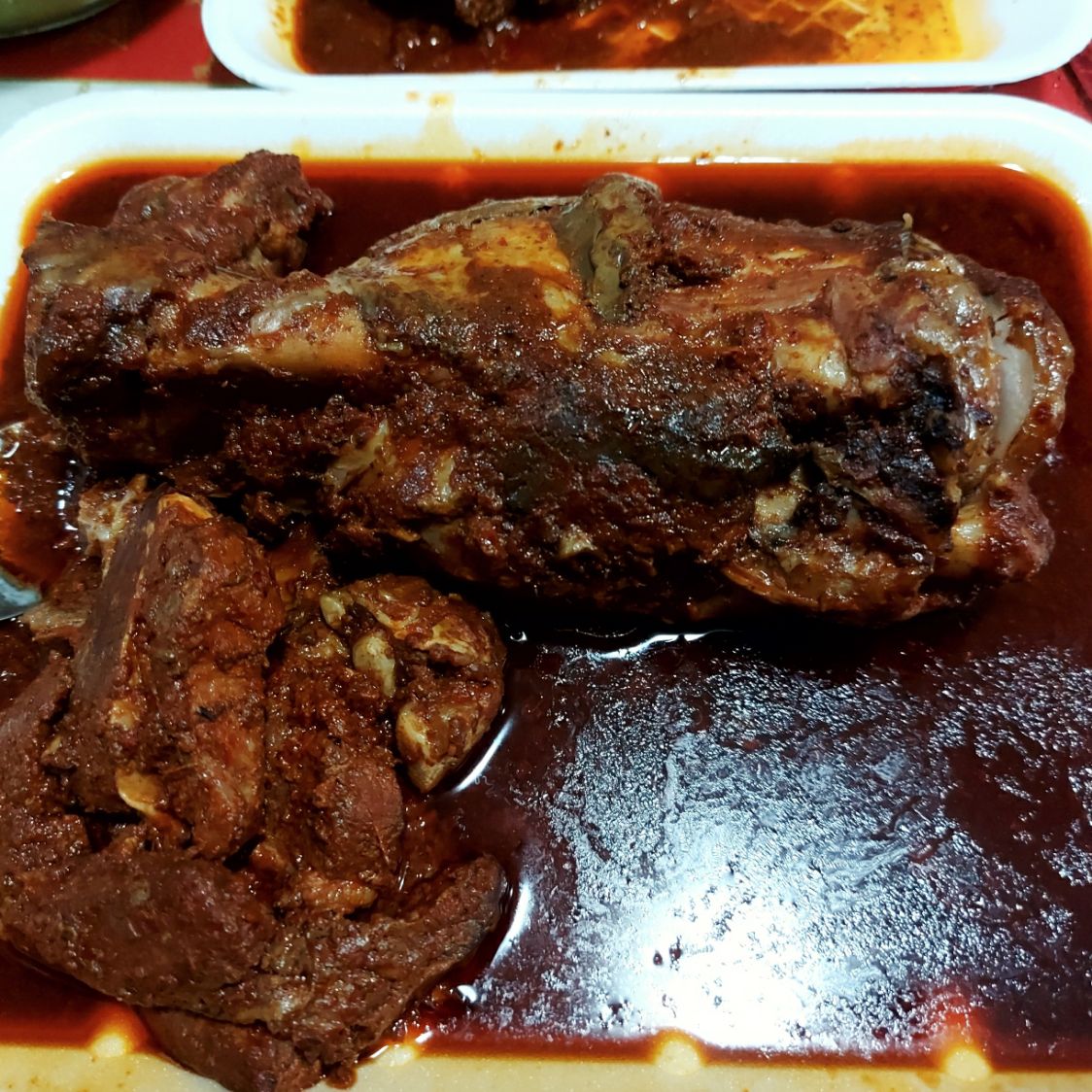 Deliciosa barbacoa de res (costilla) envuelta en hoja de plátano, porción aproximada de 350 - 400 gr. incluye: tortillas, arroz y salsa verde.