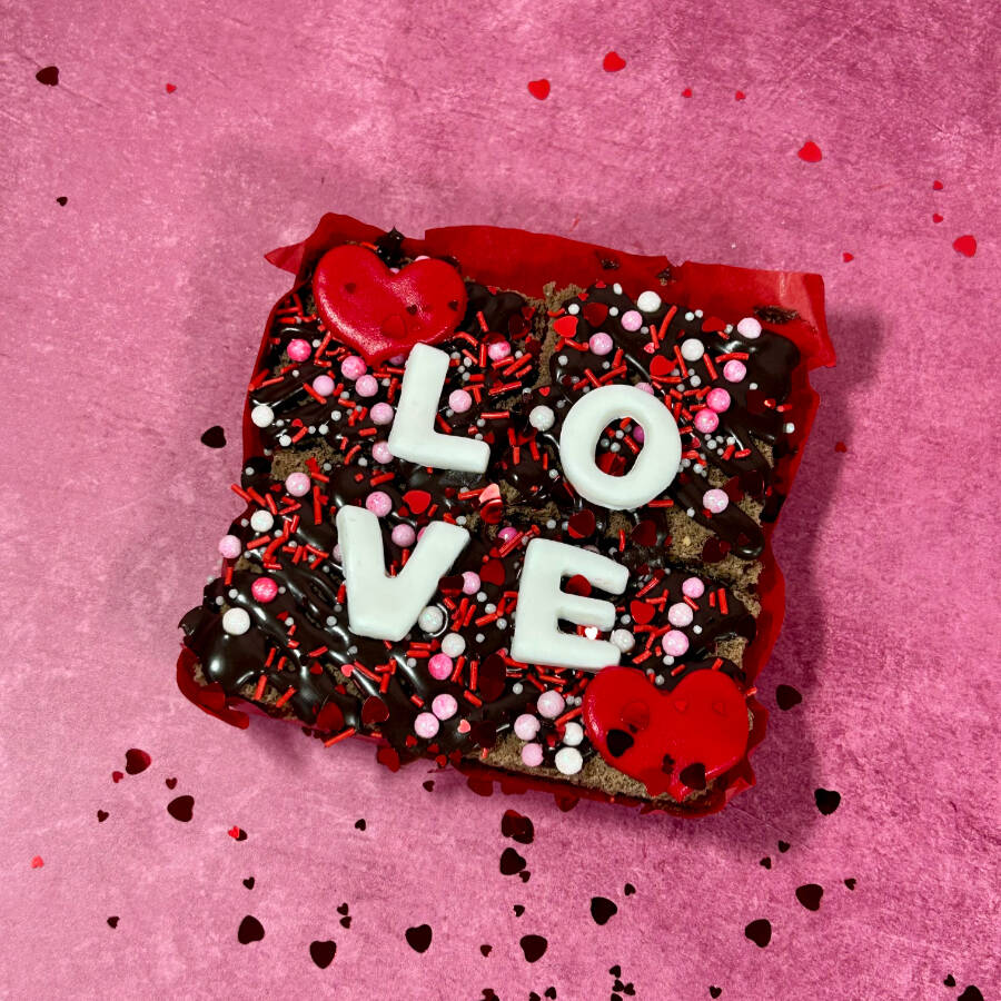 4 piezas de Brownie suave por dentro y con sabor profundo a chocolate, decoradas de San Valentin un clásico irresistible de Champlitte.