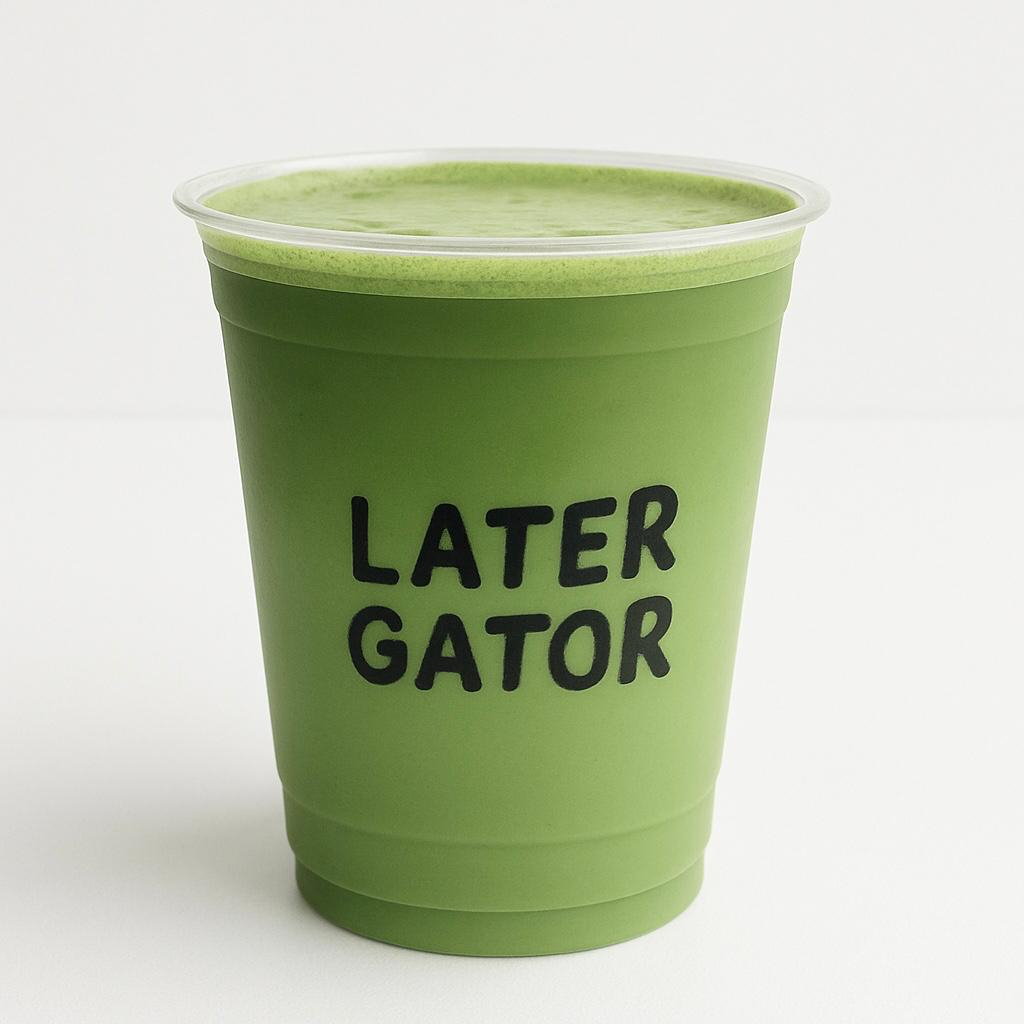 Batido de matcha con leche de coco organica, un toque de vainilla y canela, endulzado con platano