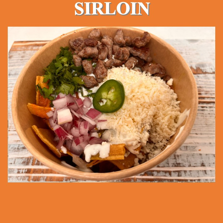 CHILAQUILES CON SIRLOIN /SALSA VERDE/ROJA/CEBOLLA/CILANTRO/CREMA