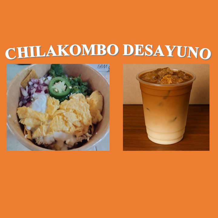 CHILAQUILES CON HUEVO REVUELTO*1 + CAFE LATTE FRIO*1