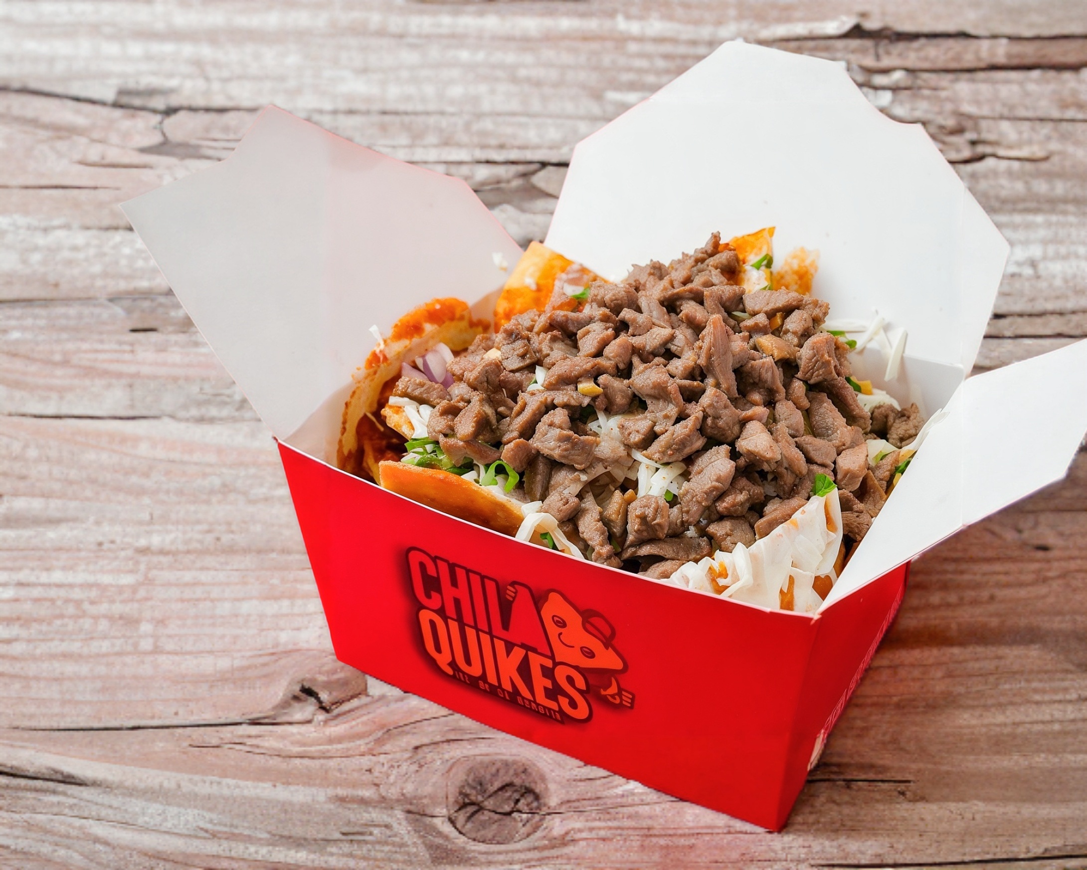 Chilaquiles con Sirloin, totopos de maíz bañados en la salsa de tu elección Puedes personalizar tu platillo con ingredientes adicionales. Plato personal
