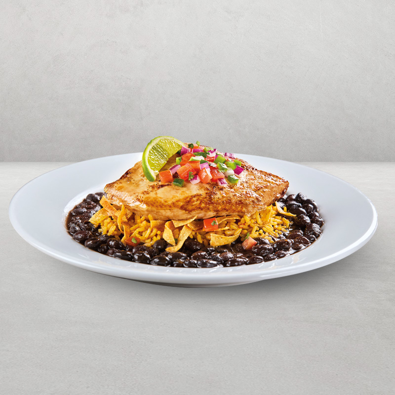 Pechuga de pollo asada (156 gr) marinada con nuestro característico sabor a margarita. Servida con arroz, frijoles, tiritas de tortilla y pico de gallo. Elige tu sopa o ensalada.