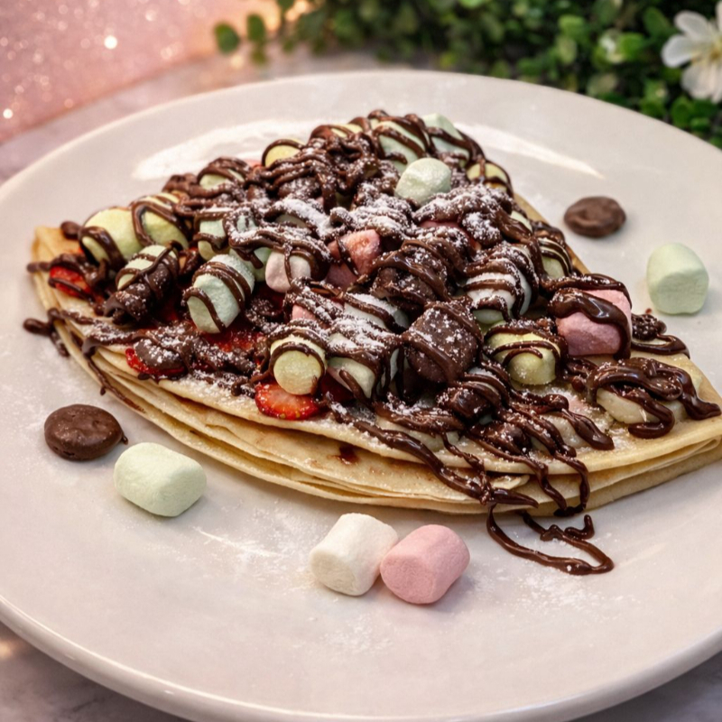 Deliciosa Crepa con 2 frutas a escoger, 2 Toppings y 1 Jarabe a tu elección. >u<