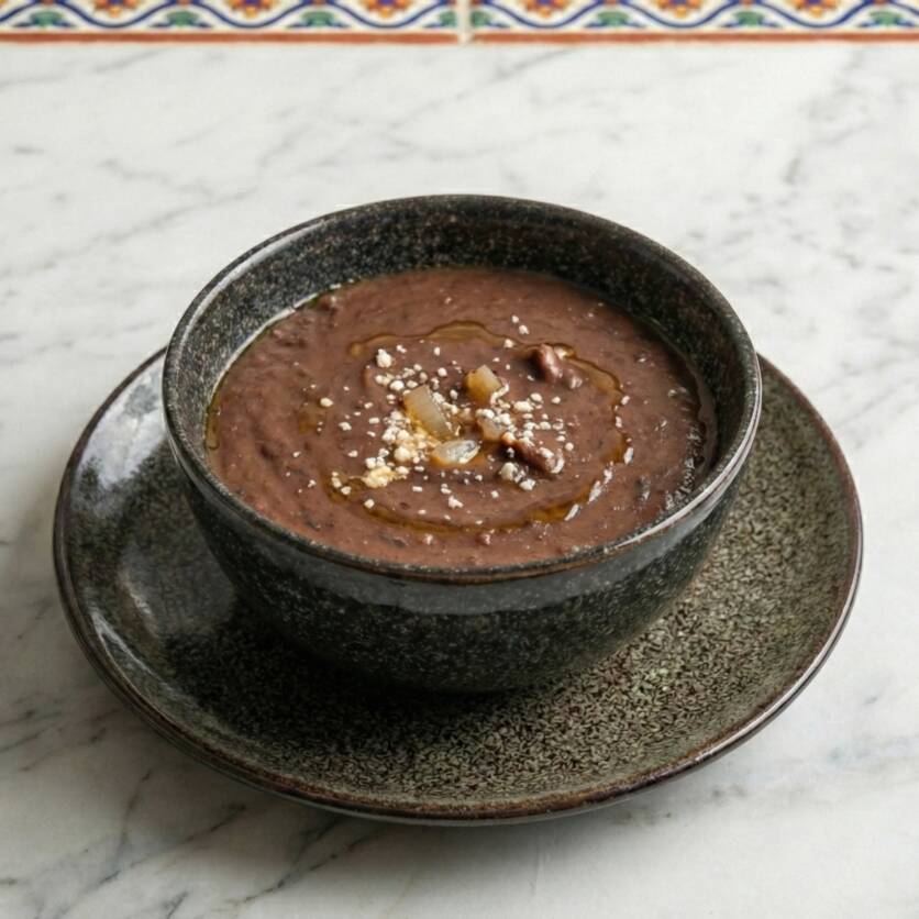 Frijoles negros refritos estilo orizaba, lentamente con la receta tradicional, sazonados con hoja de aguatillo silvestre que les da un aroma y sabor inigualable.