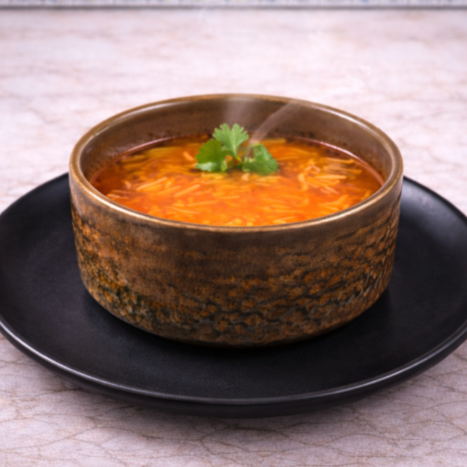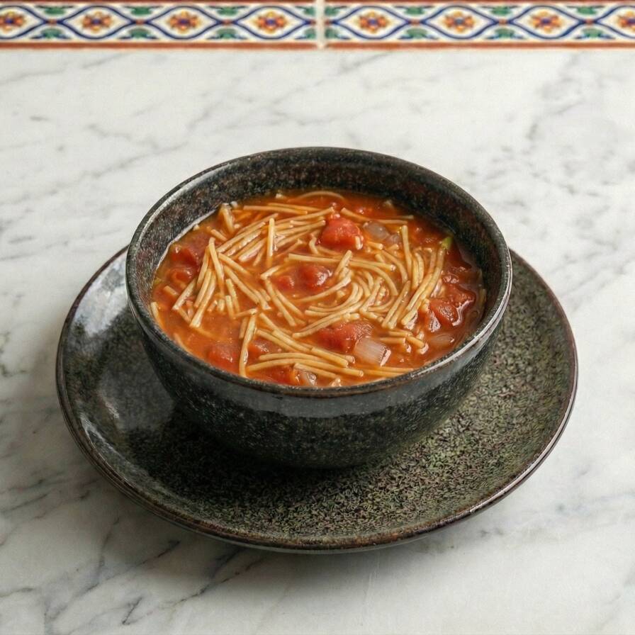 Pasta doradita (fideo, codito o moño) cocinada en nuestro caldillo especial de jitomate y especias. sencilla, calientita y reconfortante.