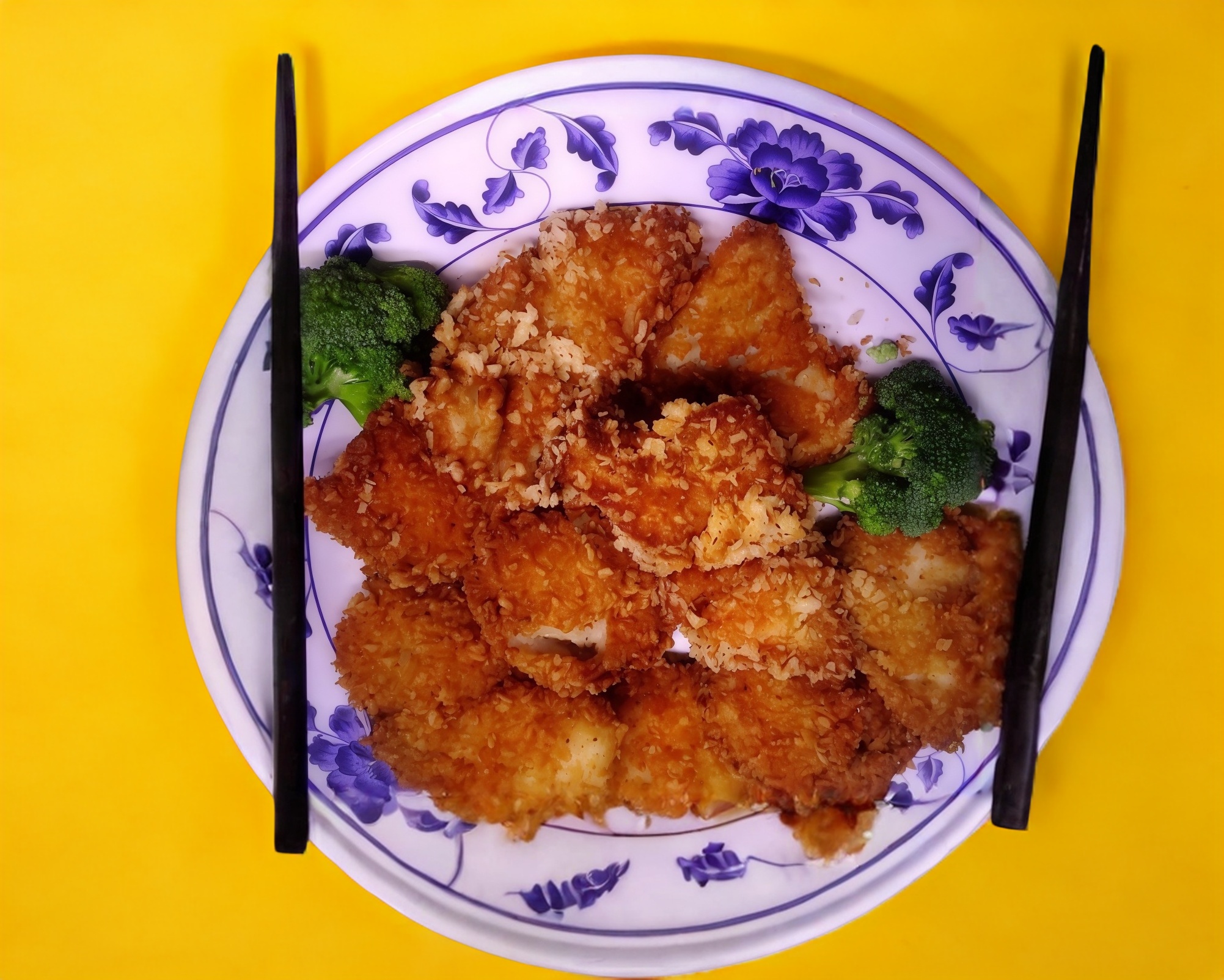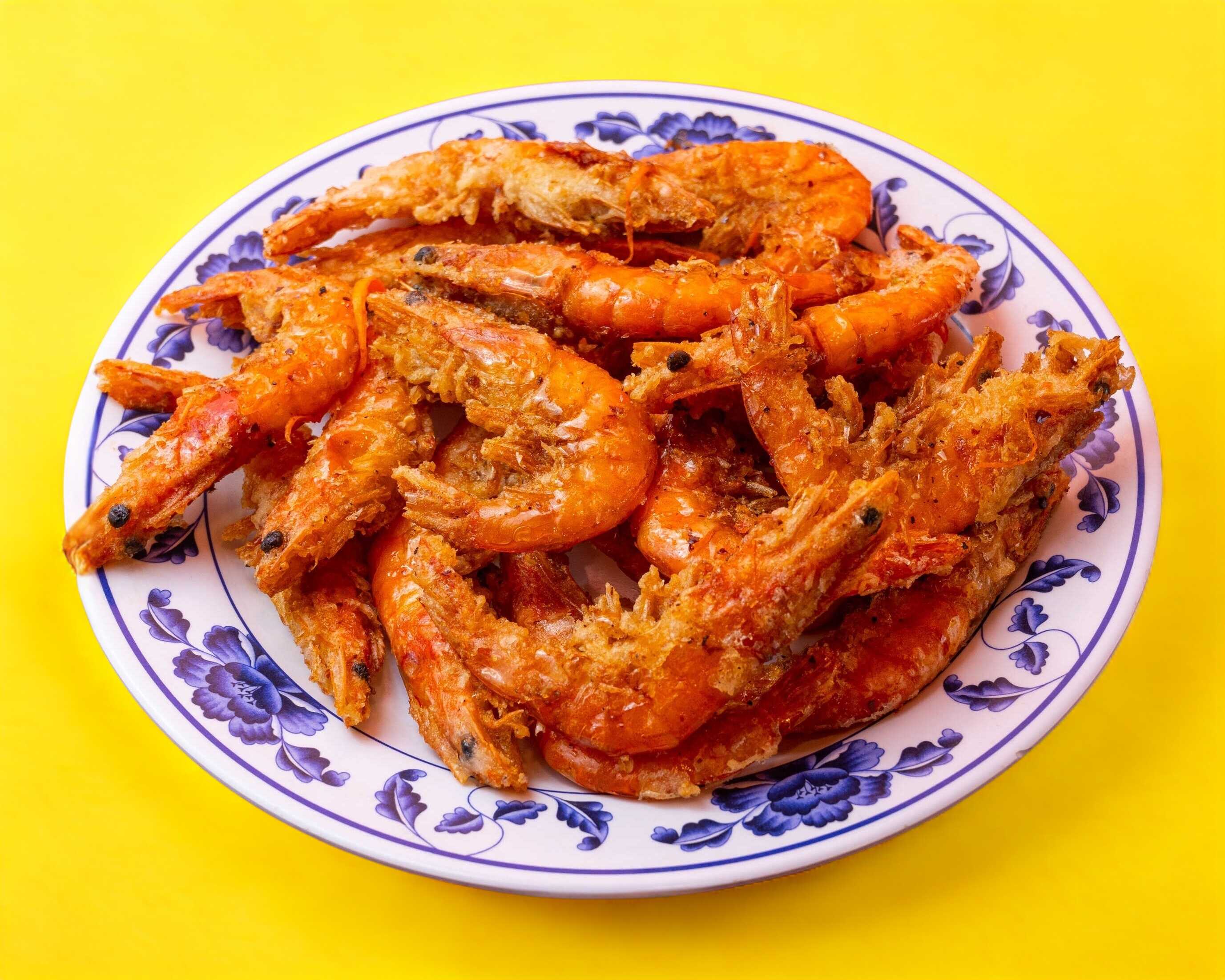 Porción pequeña de camarones sazonados, aderezados con soya y empanizado estilo cantones.