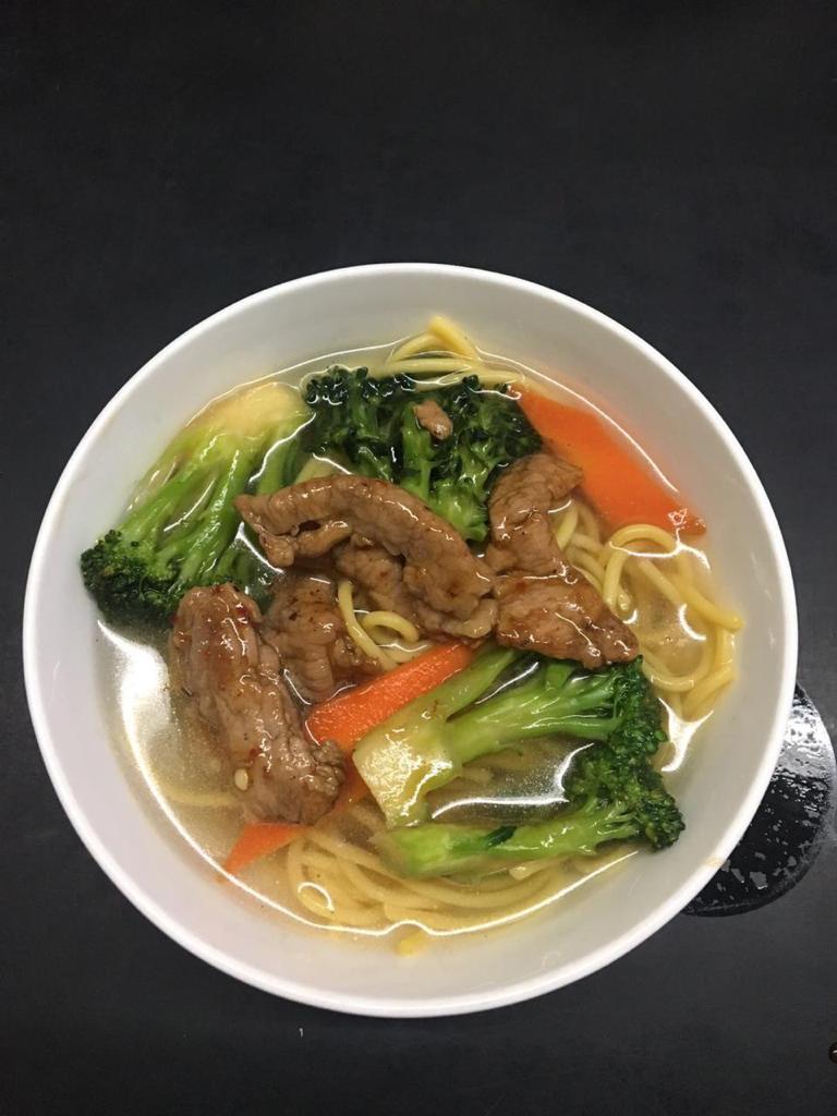 Porción pequeña de sopa cantonesa con pollo.