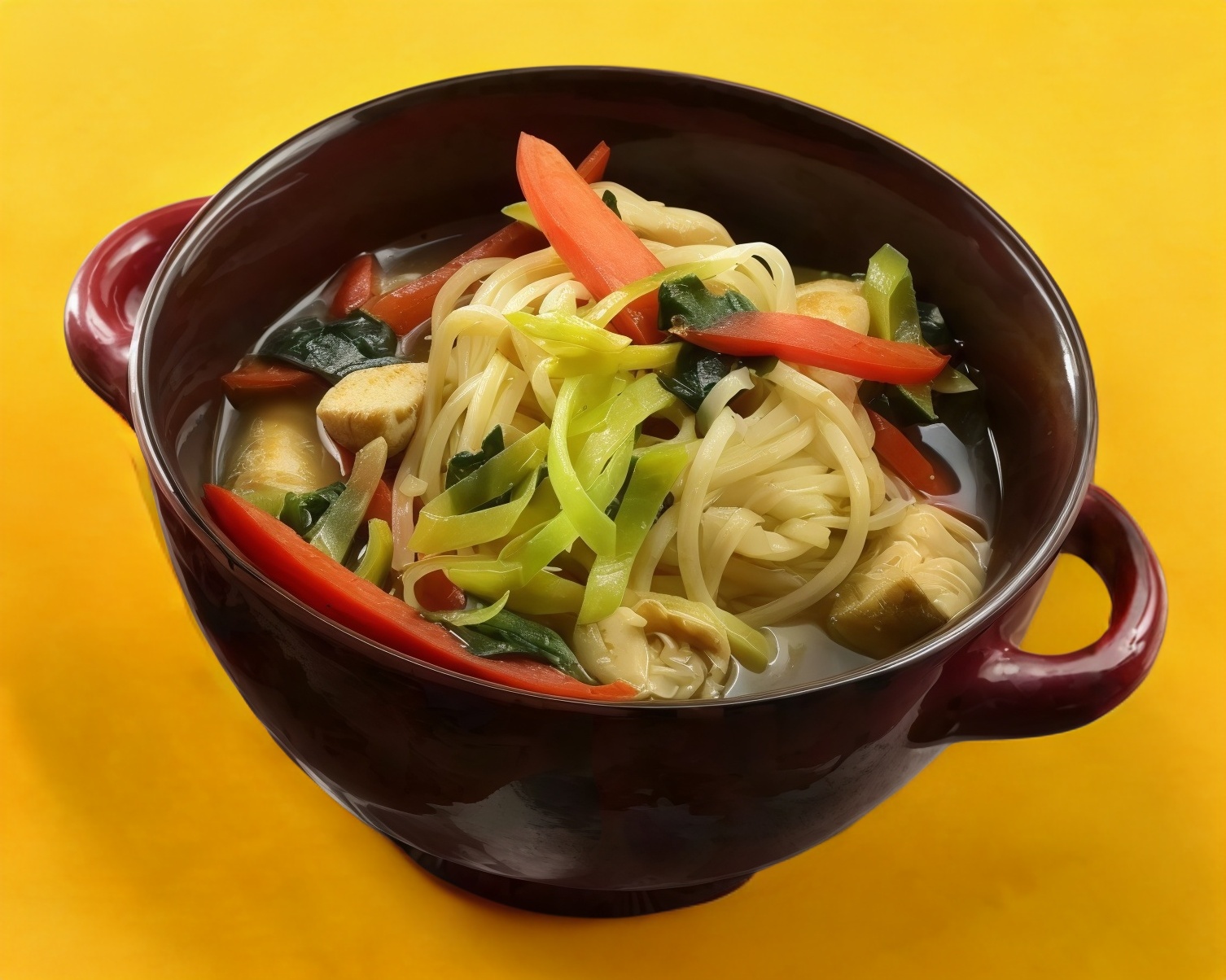 Sopa de fideos chinos con verduras.