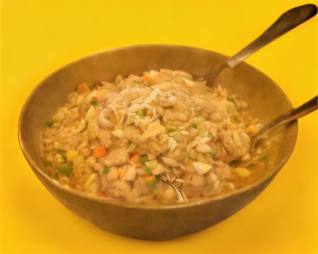 Fideos con verduras carne o pollo.