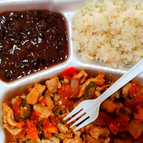 Delicioso bisteck a la mexicana acompañado de arroz y frijoles