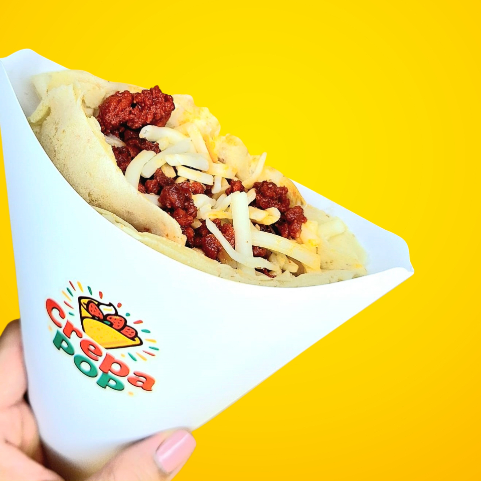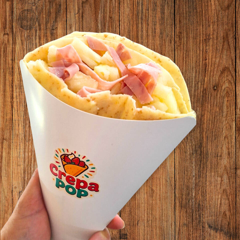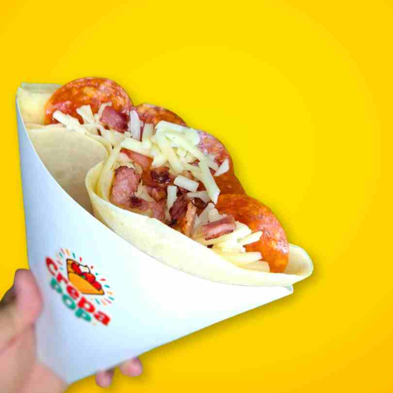 Crepa con queso manchego, peperoni, tocino y aguacate