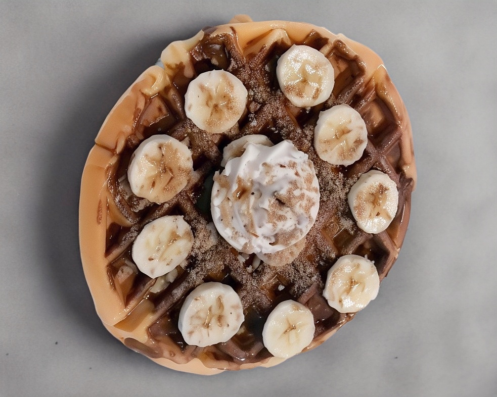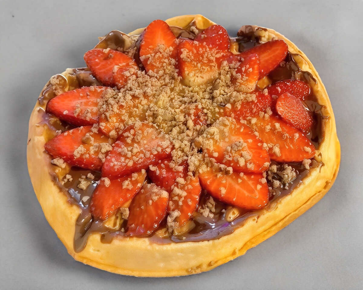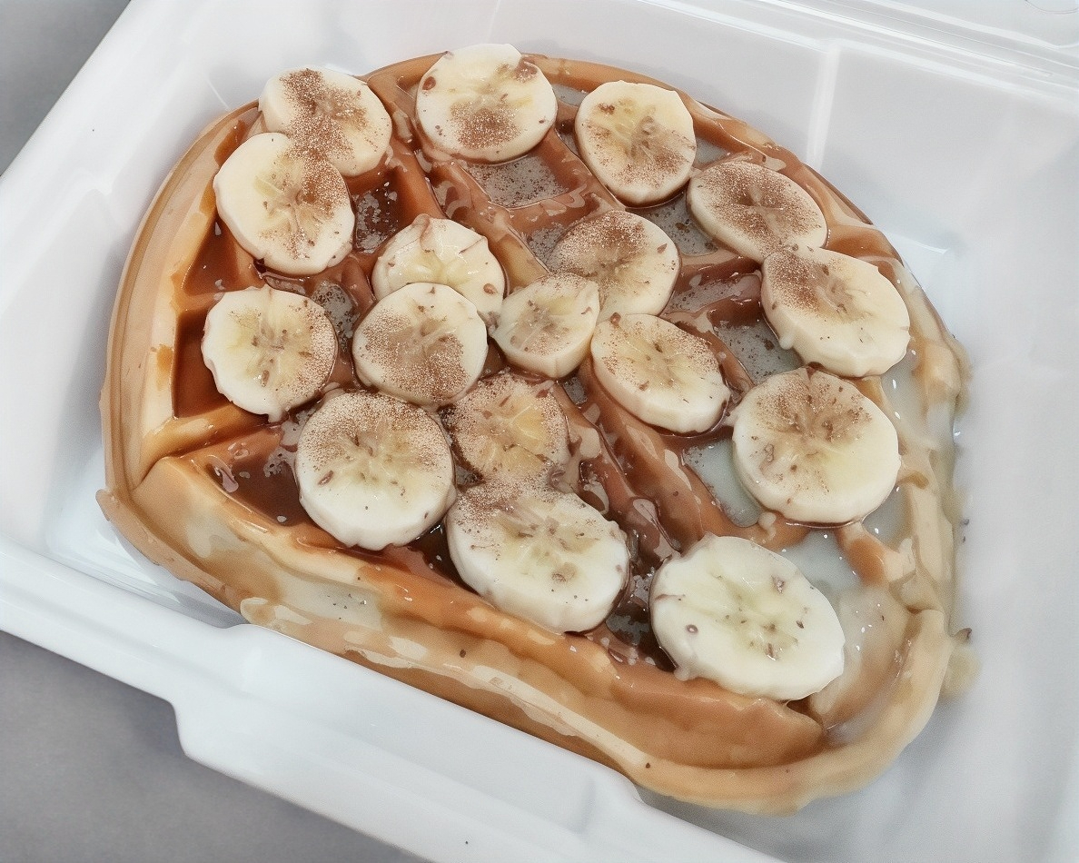 1pz Waffle con Nutella, Plátano, Galleta Oreo triturada, Fresa Natural.