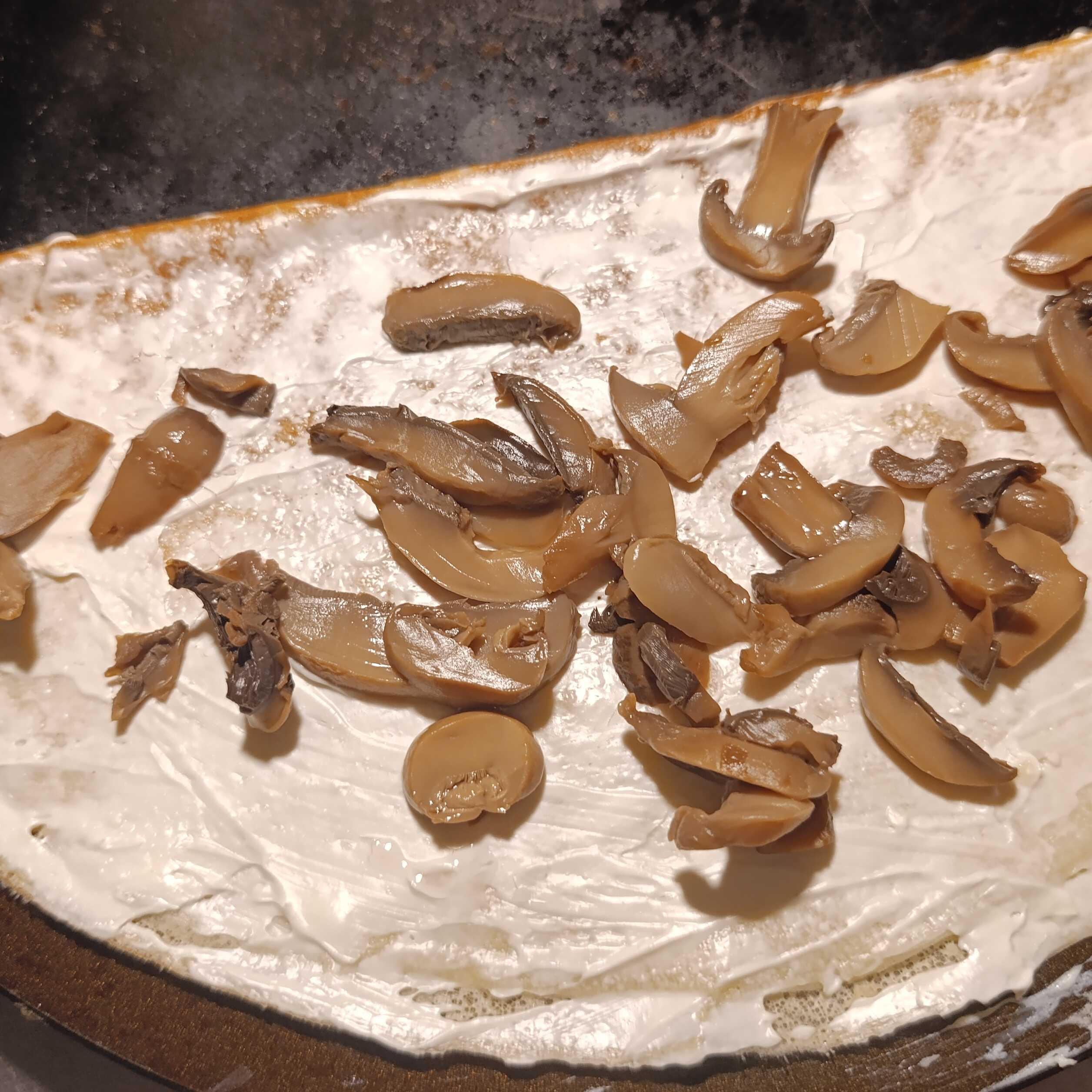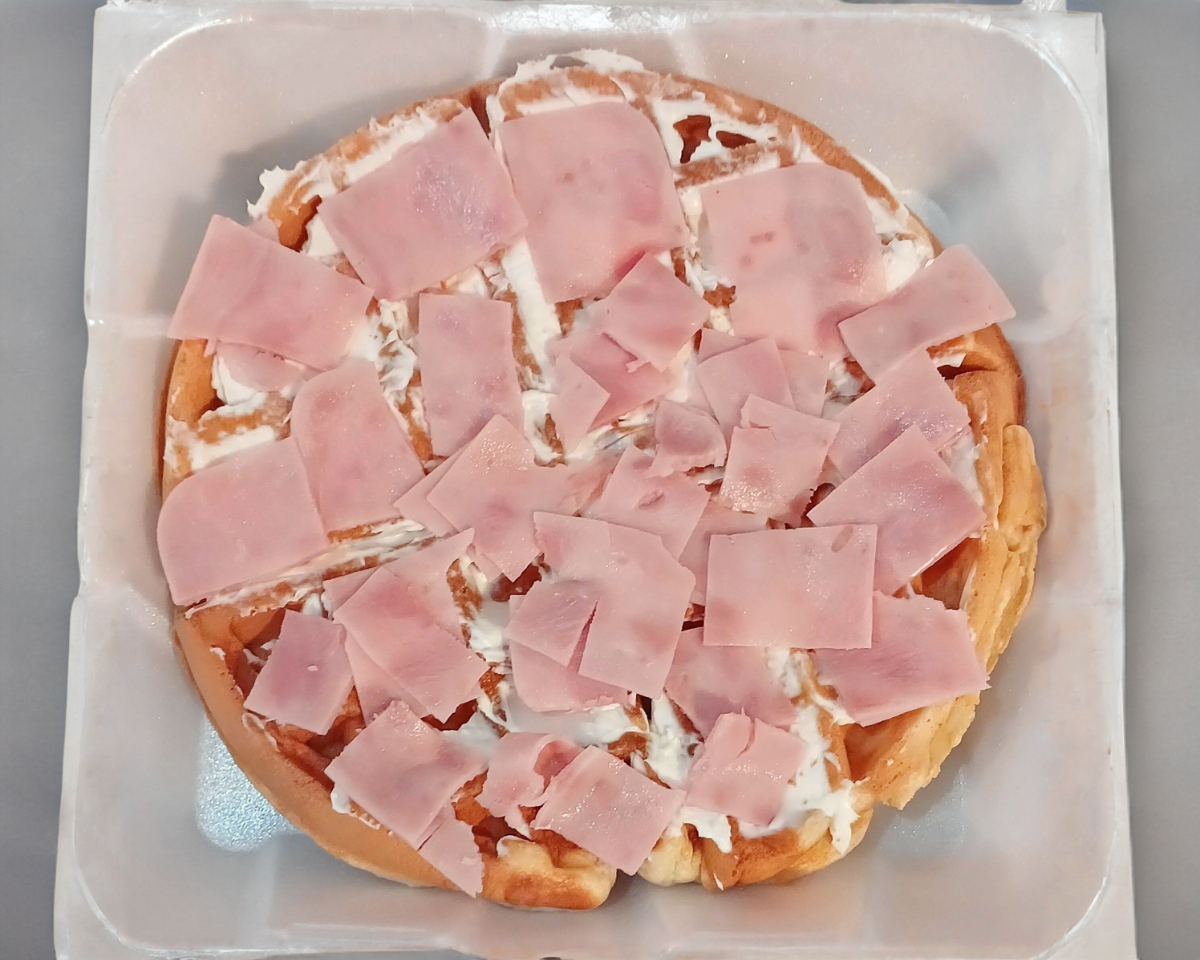1 pieza de 8x8..Waffle con Queso Philadelphia + Jamón + Champiñones ☺