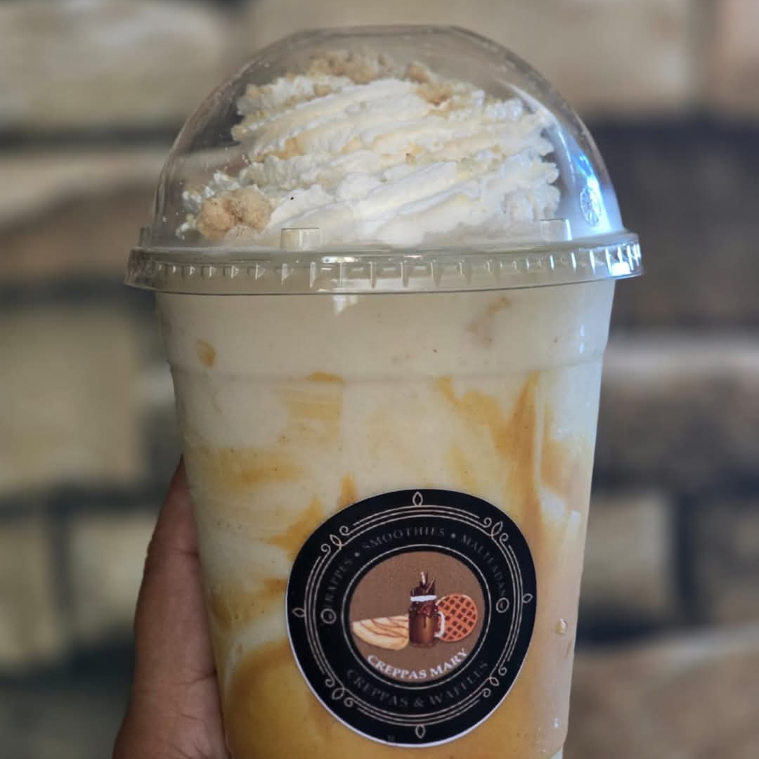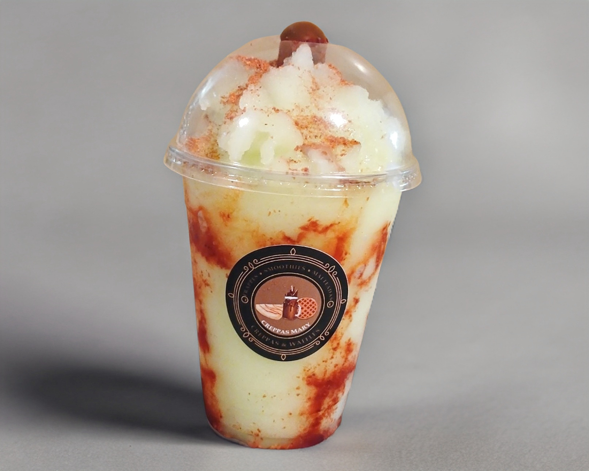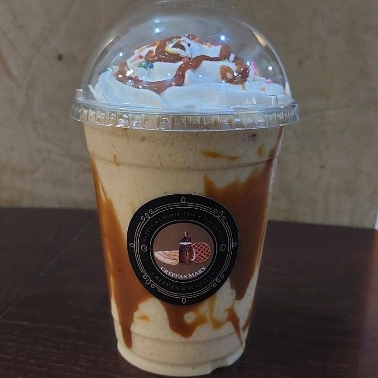 Vaso 16oz, Crema batida, caramelo liquido y trozo de Cacahuate