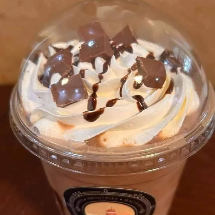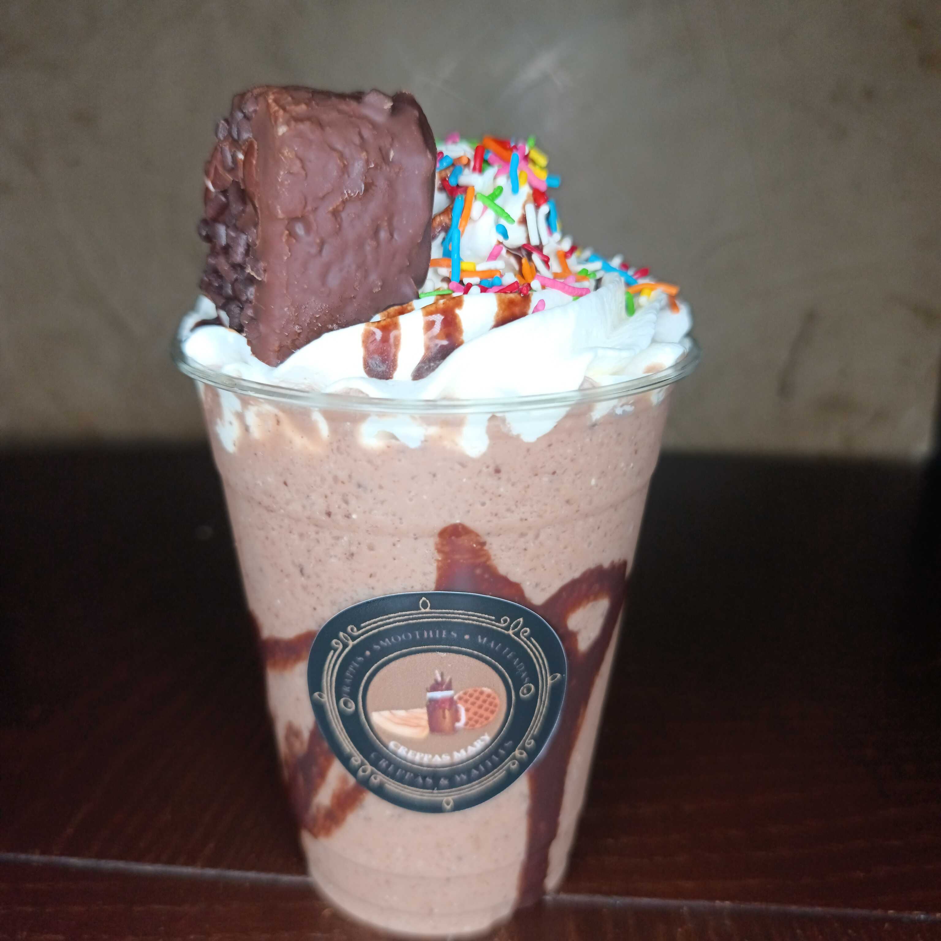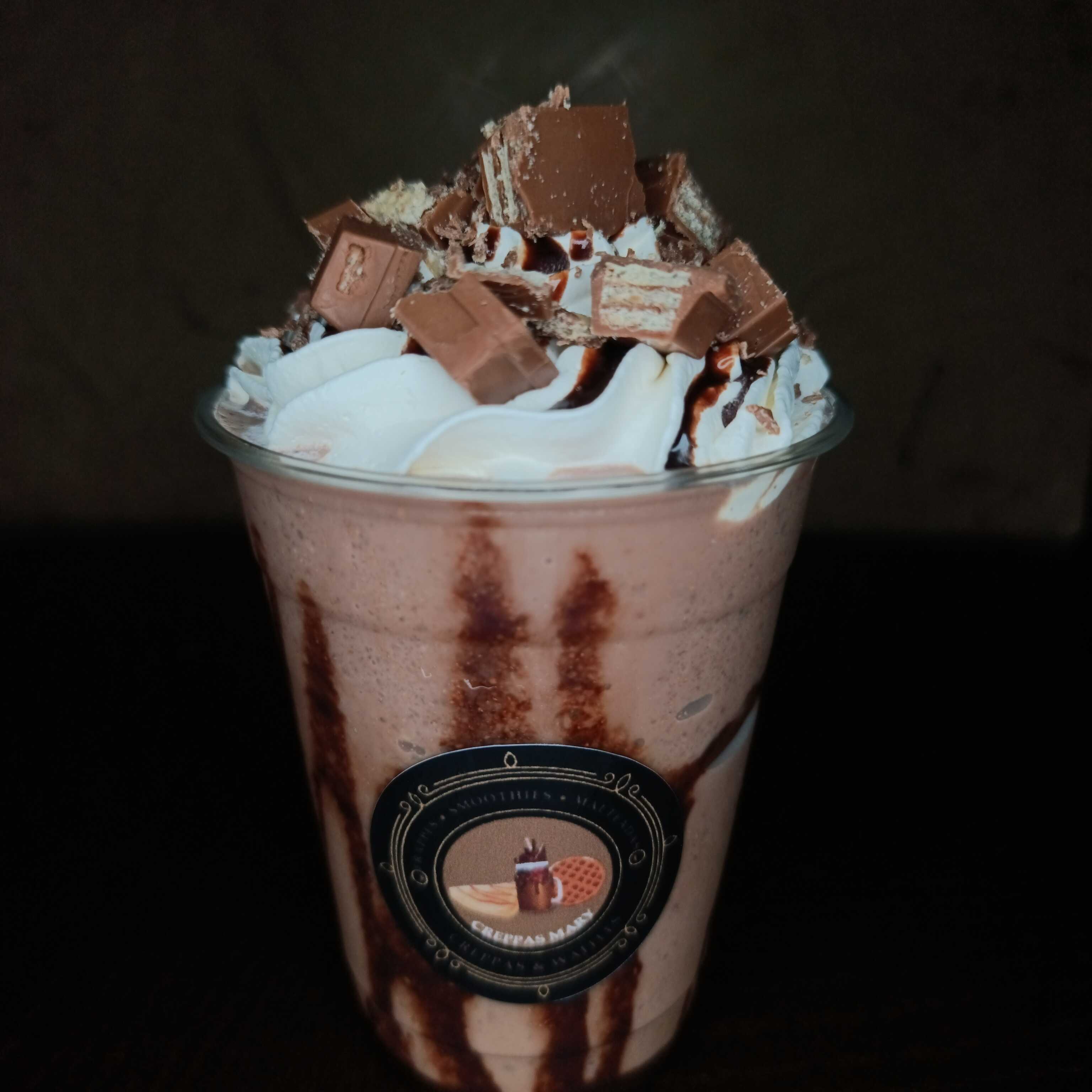 Vaso de 16oz, con crema Batida, chocolate liquido y trocitos de kitkat