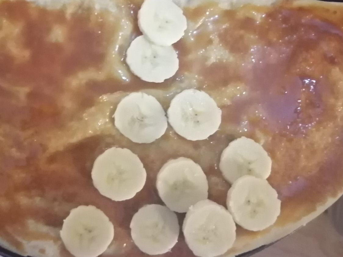1 pieza de 8x8 untado mitad de lechera, mitad de cajeta + Plátano 🍌 + Nuez