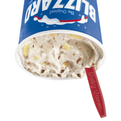 Helado de vainilla DQ® mezclado con coco tostado, nuez y plátano