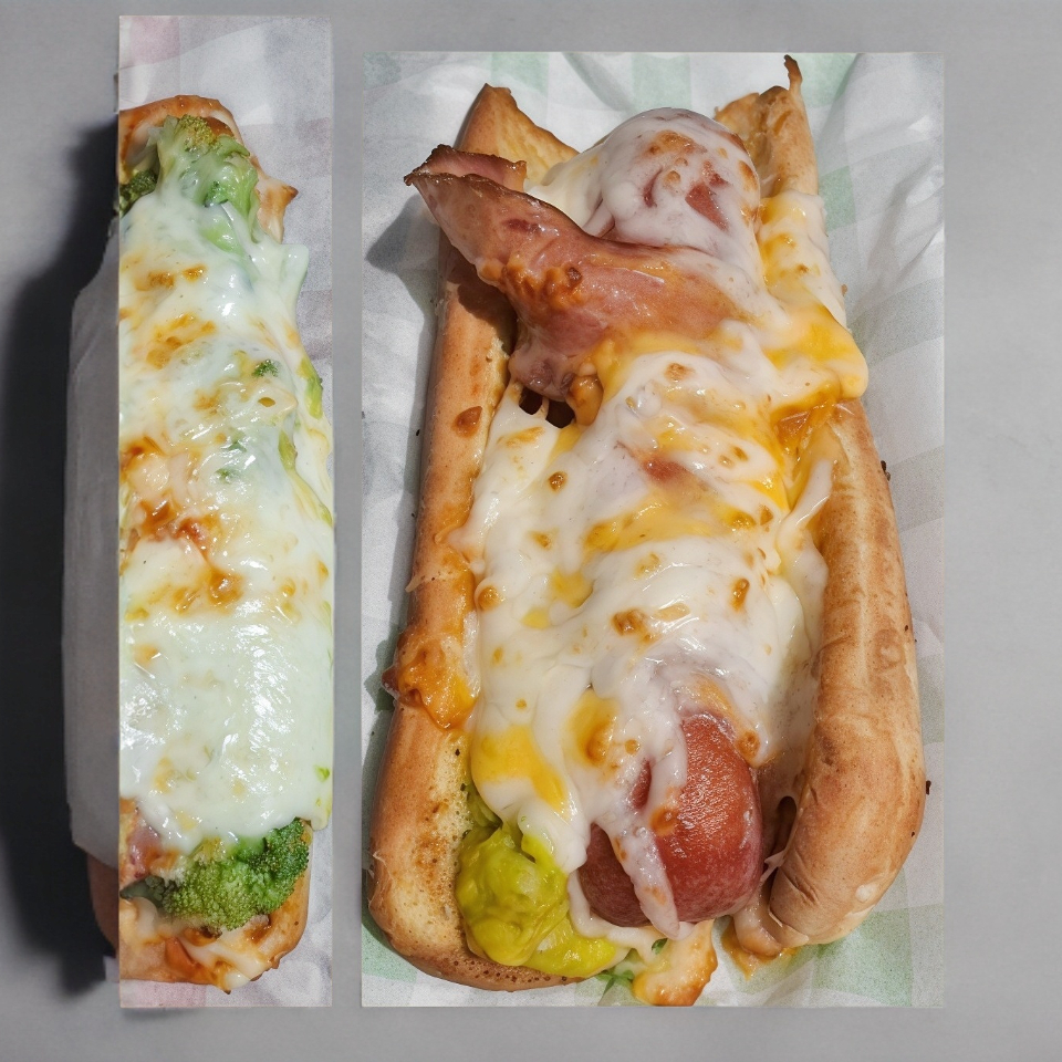 salchicha jumbo envuelta en tocino con aderezo y mezcla de 3 quesos (mozarella, gouda y cheddar)