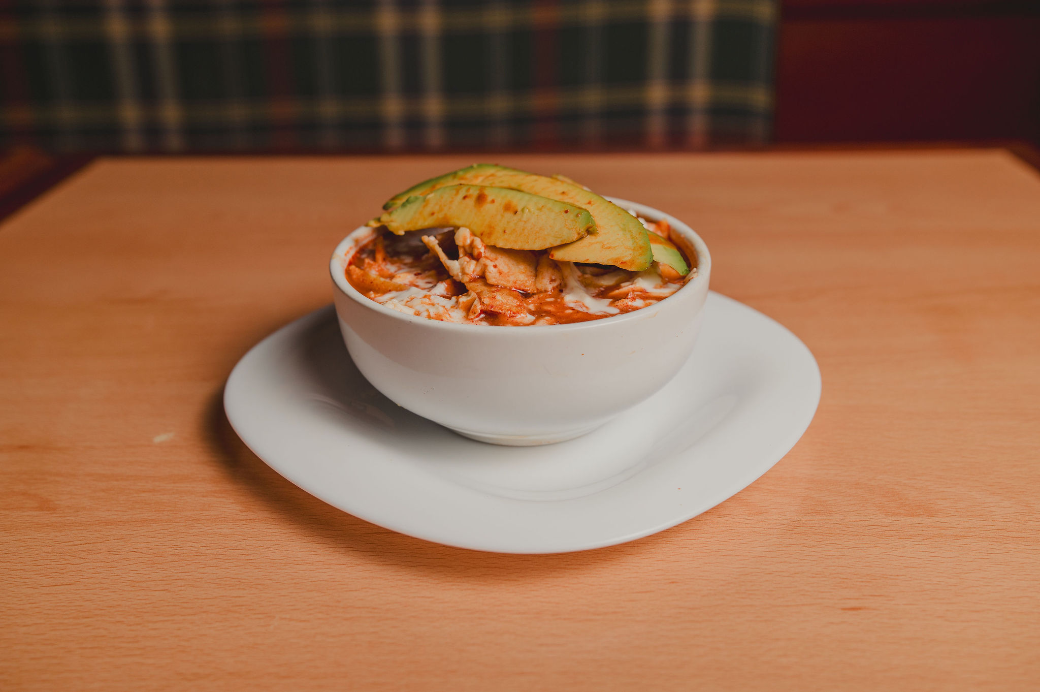 Deliciosa sopa de tortilla con aguacate, crema y queso fresco.