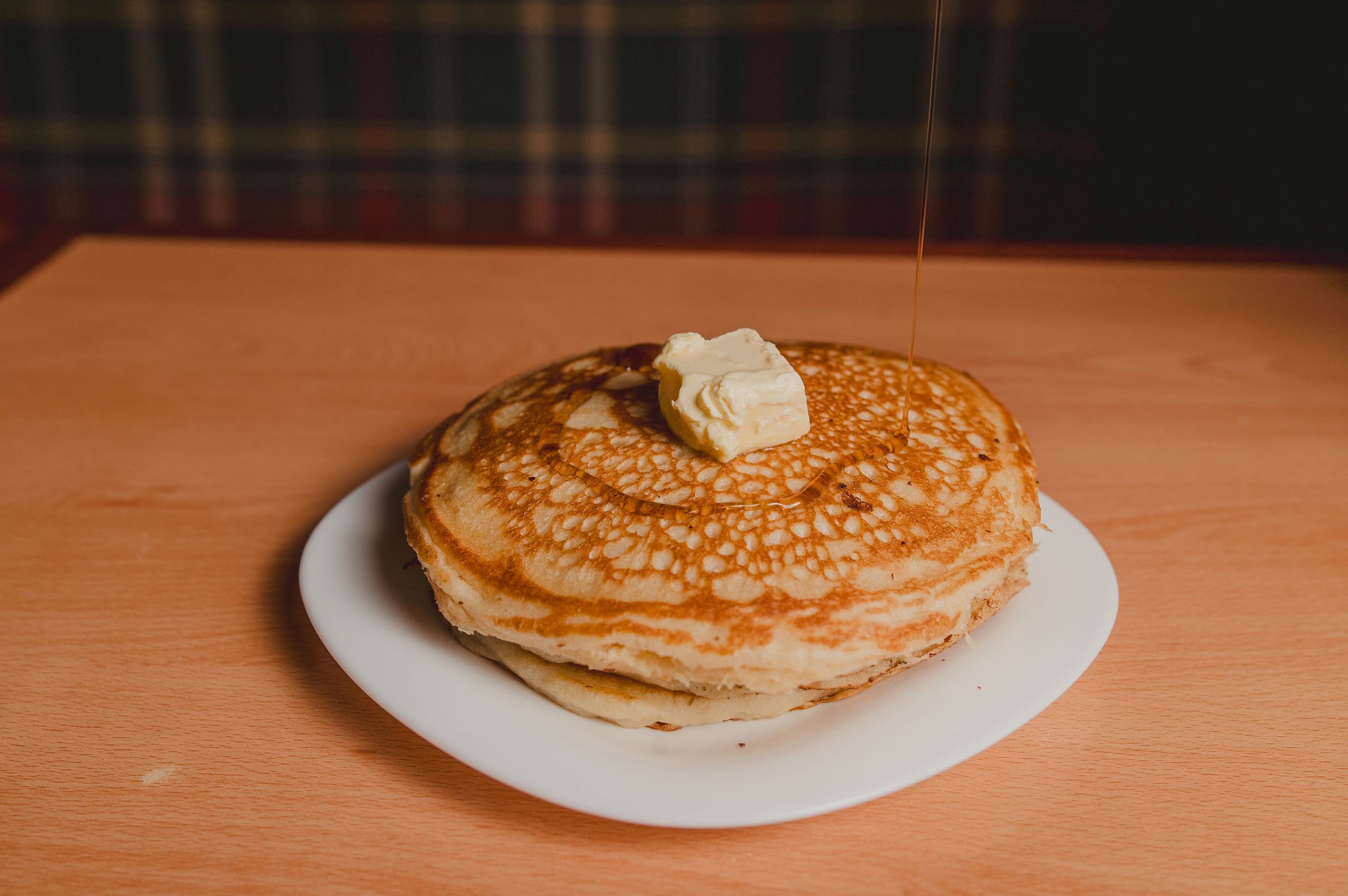Orden de 3 mini hot cakes con miel maple; un café americano
