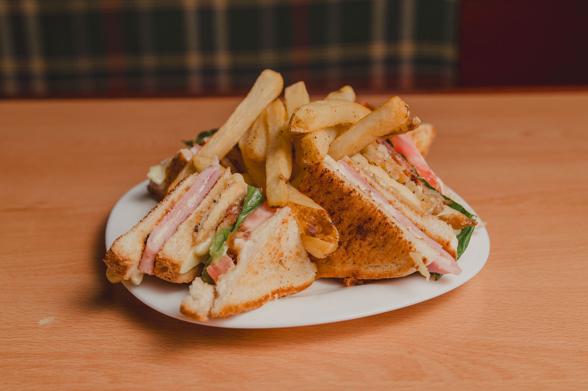 Club sandwich con papas fritas
