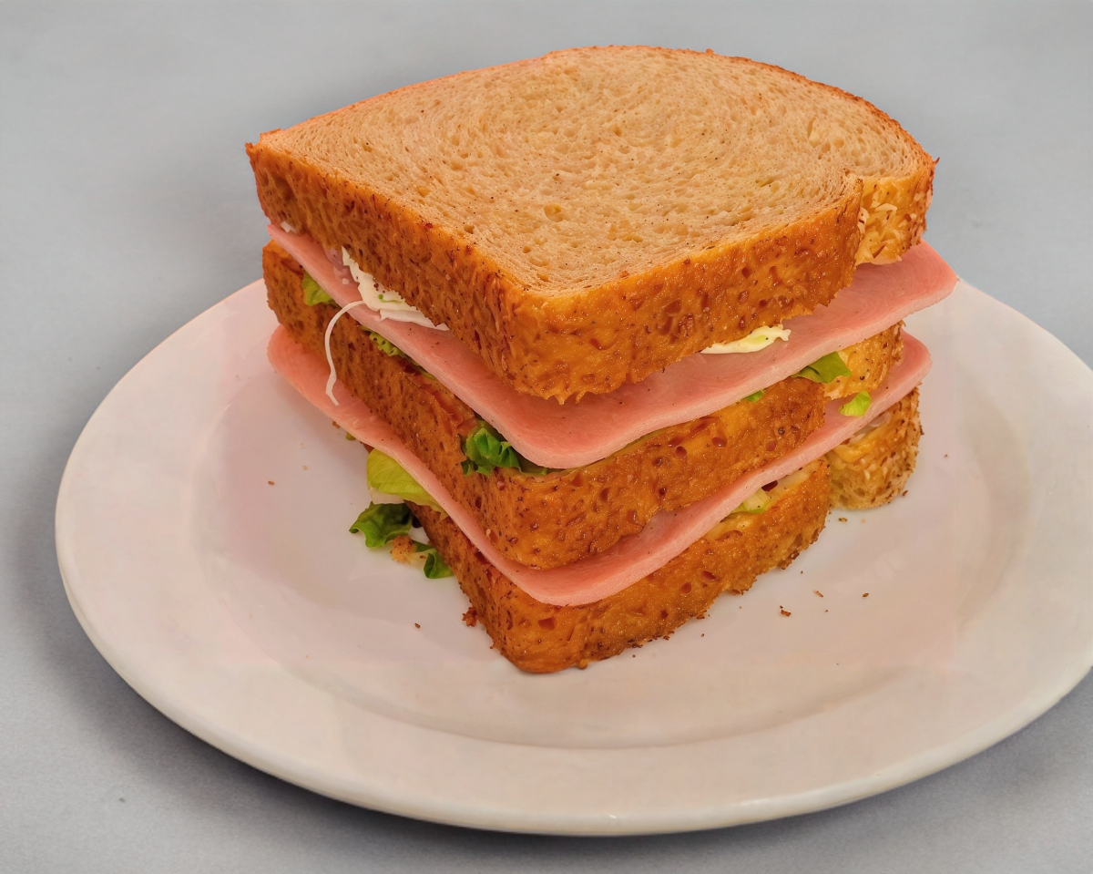 incluye 3 rebanadas de pan,lechuga, jamon de pavo, tomate,queso manchego y queso de hebra,
