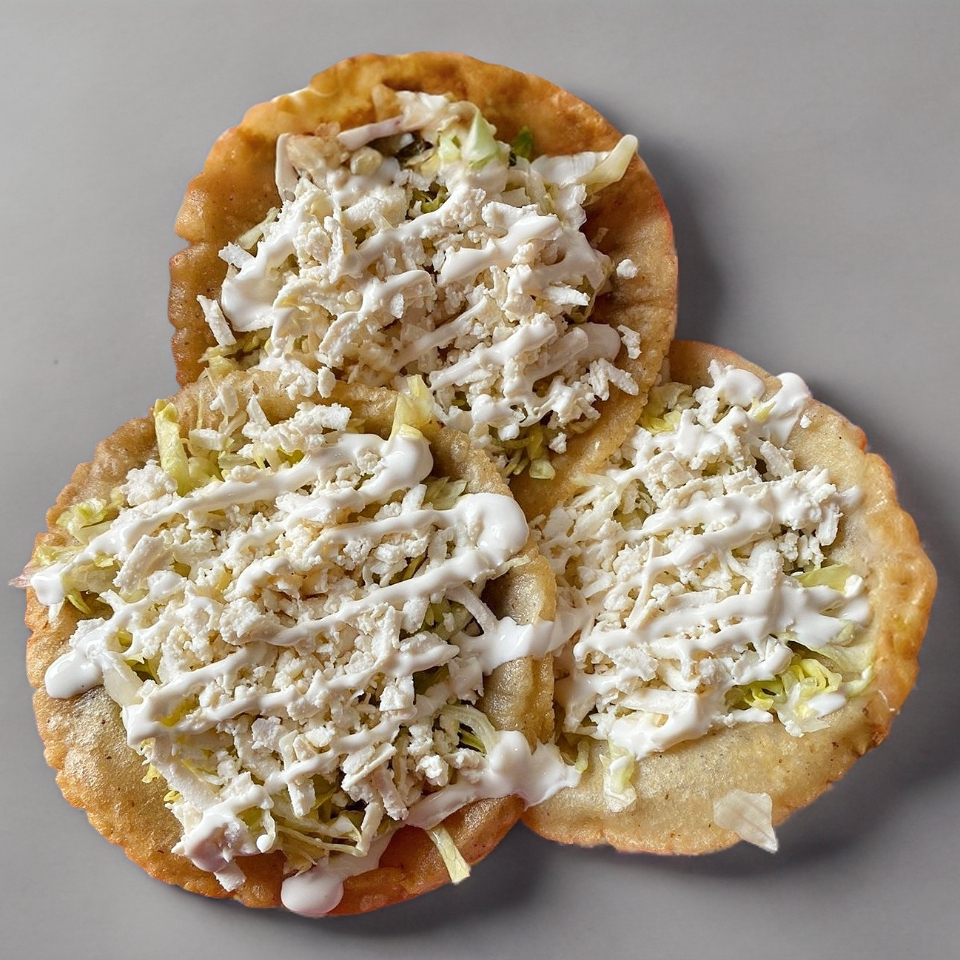 lgordita rellena de frijol preparada con lechuga, crema y queso. Estilo Rinconada.