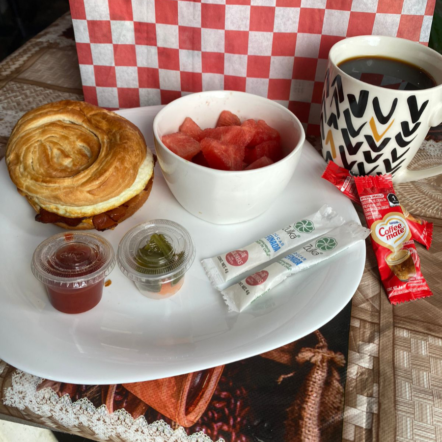 Sandwich americano*1 + Cafe americano*1 + Porción fruta*1