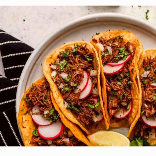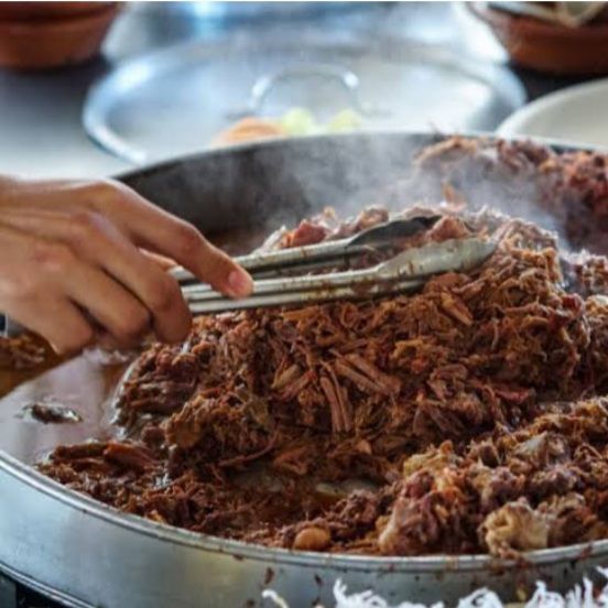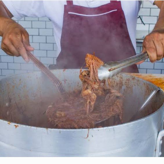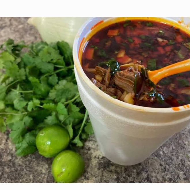 Medio kilo de birria con un litro de consomé servido aparte con tortillas ,salsa,limones,cebolla con cilantro,rábanos,pepino y salsa