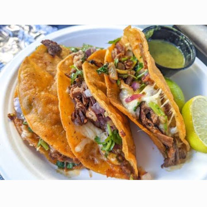 3 piezas quesabirrias de res con consomé chico limones y salsa