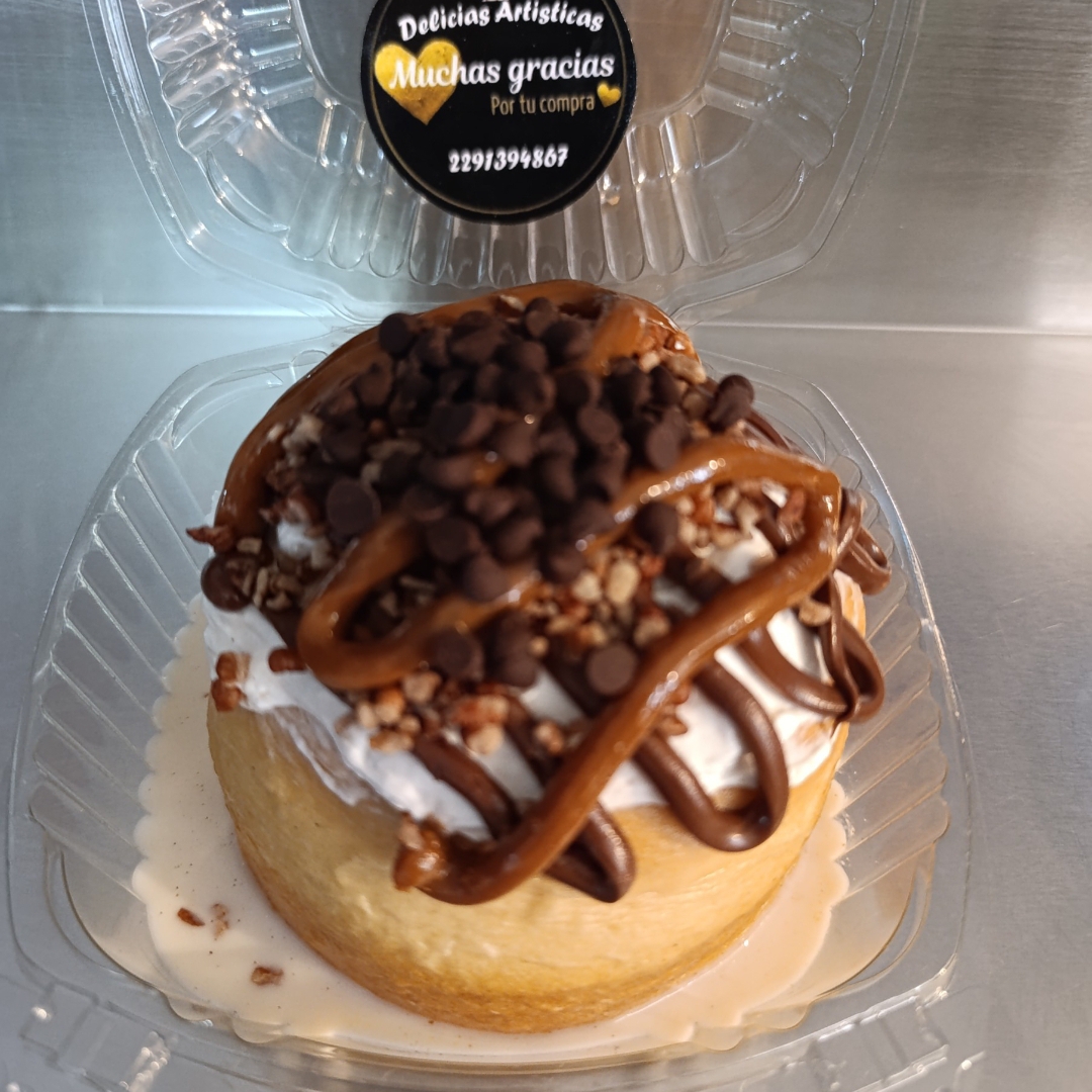 Delicioso Roll, bañado en 3 leches incluye 1 topping de tu eleccion