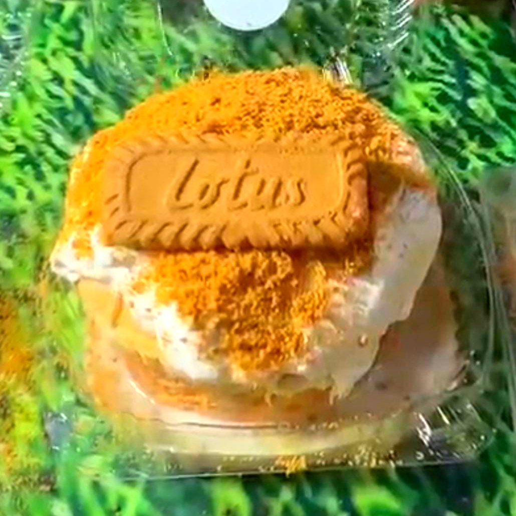 BAÑADO CON 3 LECHES, COBERTURA DE CREMA DE QUESO ACOMPAÑADO DE GALLETA LOTUS MOLIDA Y UNA GALLETA LOTUS