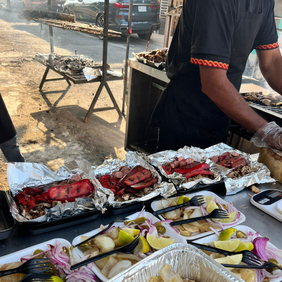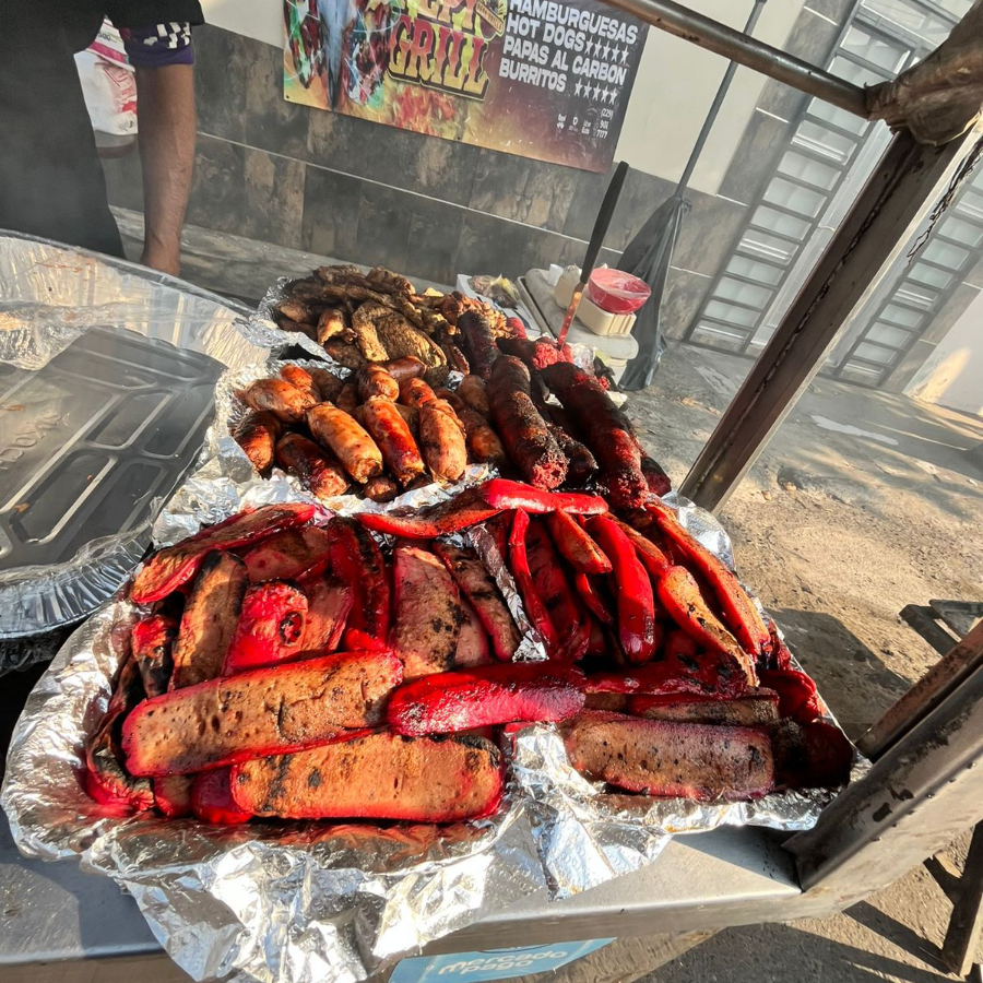 Carnes: costilla, arrachera, salchichón, longaniza, chistorra, chorizo español y argentino y queso asado. Incluye acompañamientos.