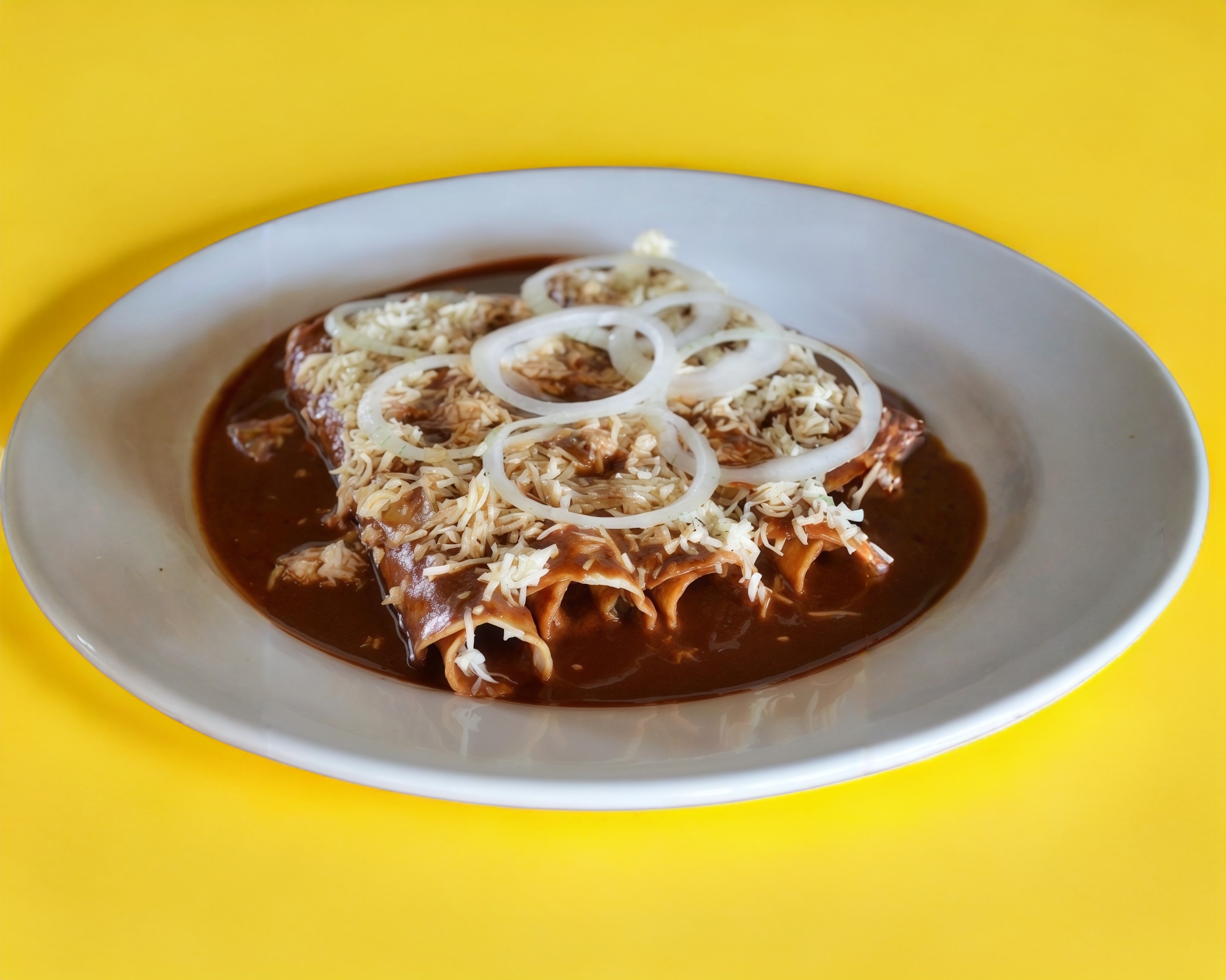 Doble tortilla dorada, queso, cebolla y cilantro.