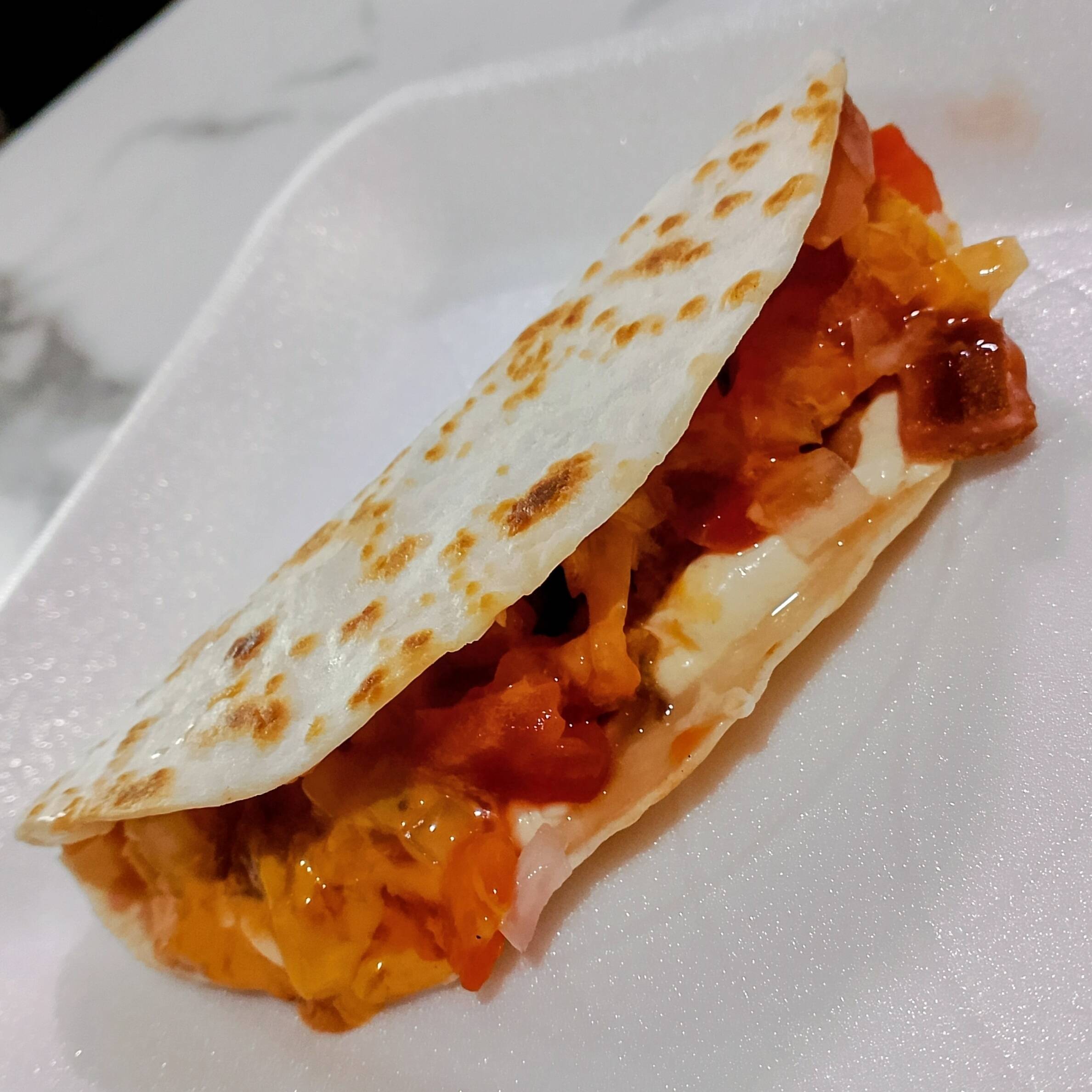 Tortillina, jamón, queso de hebra, salchicha, tomate, cebolla, capsut, queso amarillo, mostaza , mayonesa chipotle