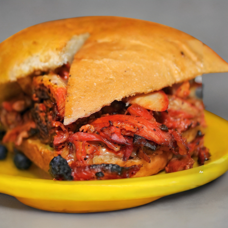 Telera con carne Asada y queso de hebra, lechuga tomate ,aguacate ,chile en rajas