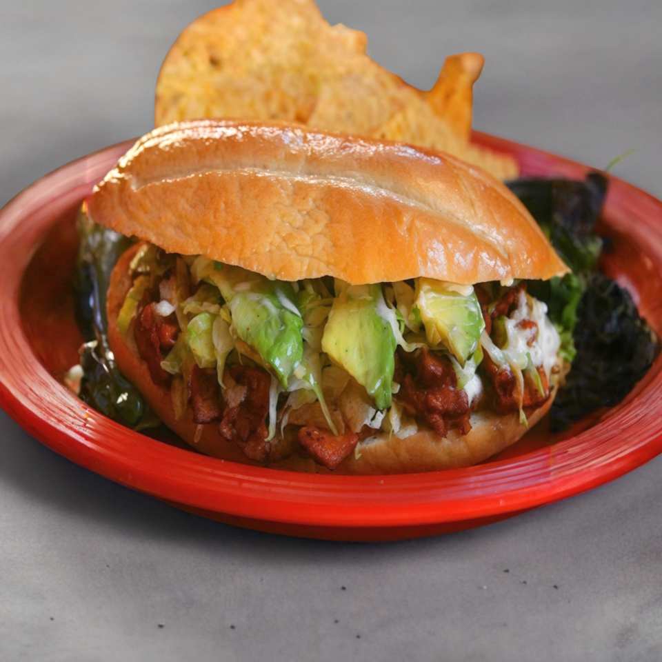 Chicharrón prensado, salsa y verdura.