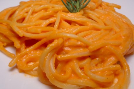 Tazón de 1/2 de espaguetis rojos.