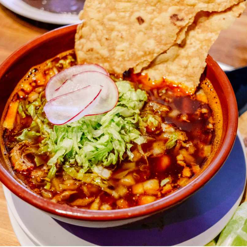 orden de pozole (pasado de medio litro con carnita)acompañado con su lechuga,rabano,limones y totopos
