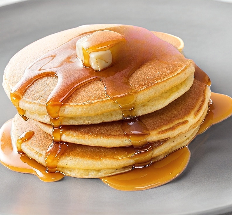Deliciosos hot cakes sabor vainilla 3 piezas con 2 tipping liquido
