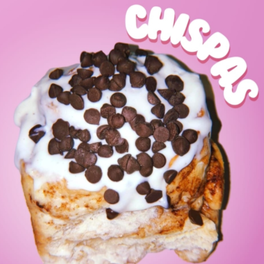 Rol de canela con 3 leches gleaseado y topping de chispas de chocolate