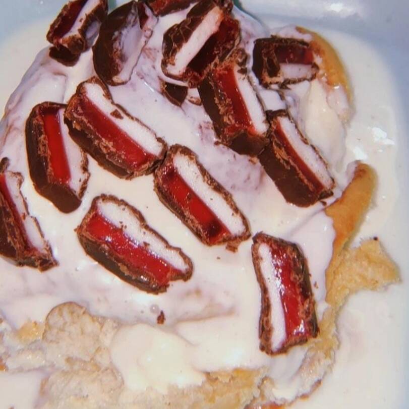 Rol de canela con glaseado con 3 leches y topping bubu lubu