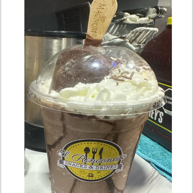 leche, chocolate, magnum, chantilly y topping de chocolate.