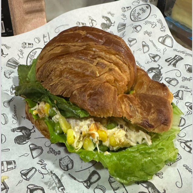 Pan a elegir, ensalada rusa de pollo con verduras(zanahoria,chicharo y elote amarillo), mayonesa y lechuga.